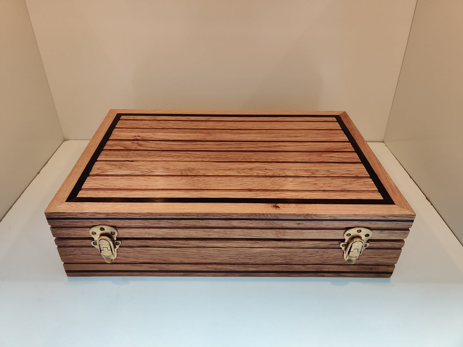 Commissioned one-off watch box made from 150 year old French Oak contrasted with embedded Cambia Ash