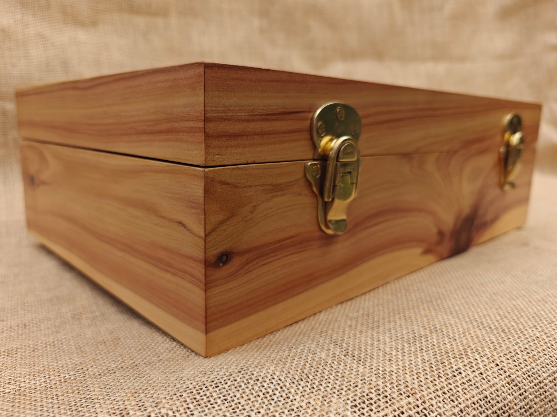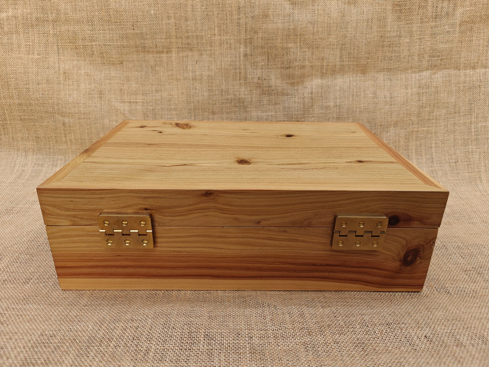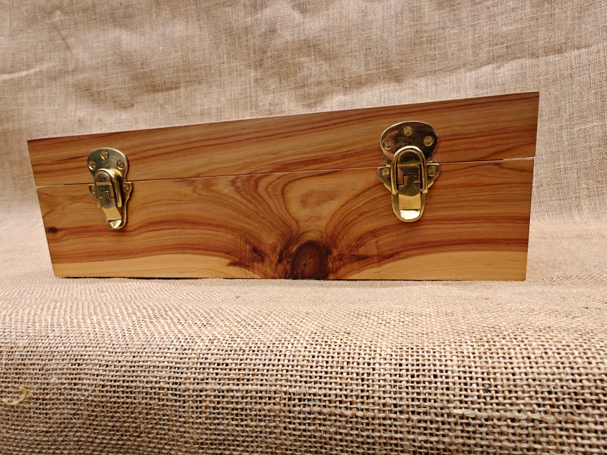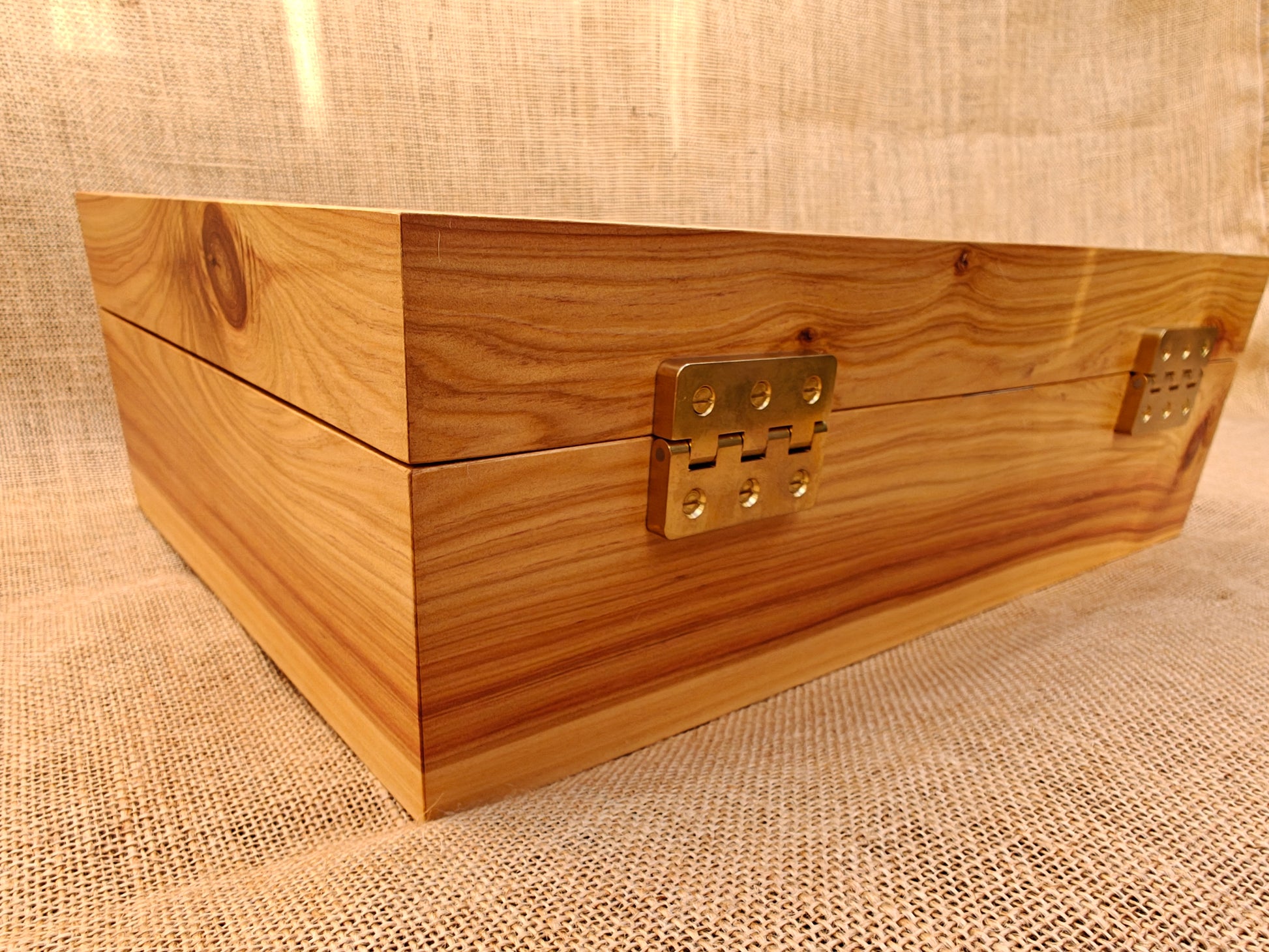 Recycled Cypress. Originally used for floor board and inspired by our commitment to use recycled materials where ever we can. With the purpose of storing or protecting your valuables for transportation.